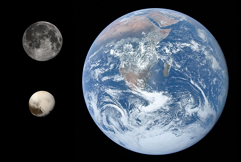 Méretbeli különbségek. A Plutó alul található, bal oldalon, a Föld és a Hold közelében. Forrás: Public Domain / wikipedia
