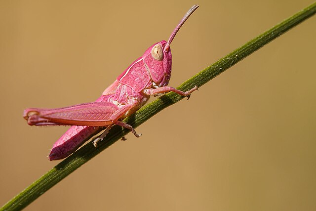Az alábbi felvételen egy rózsaszín sáska látható: